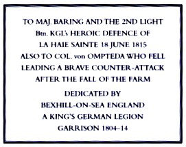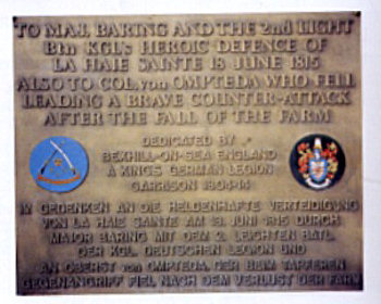 Members of the Study Group in 1998, visited Waterloo and placed a plaque on the wall of La Haye Sainte where the 2nd Light Battalion of the King’s German Legion gallantly defended the farm during the Battle of Waterloo.
